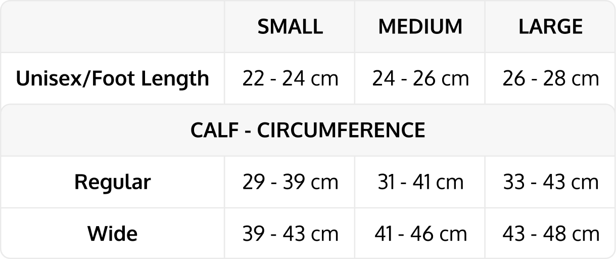 - Medium graduated compression (15-20 mmHg)